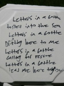 Finally, there’s Letters in a Bottle. If you’ve been following this blog for a while, you may remember me talking about this song last year. I talked a little bit about the history, but let me go more in-depth.